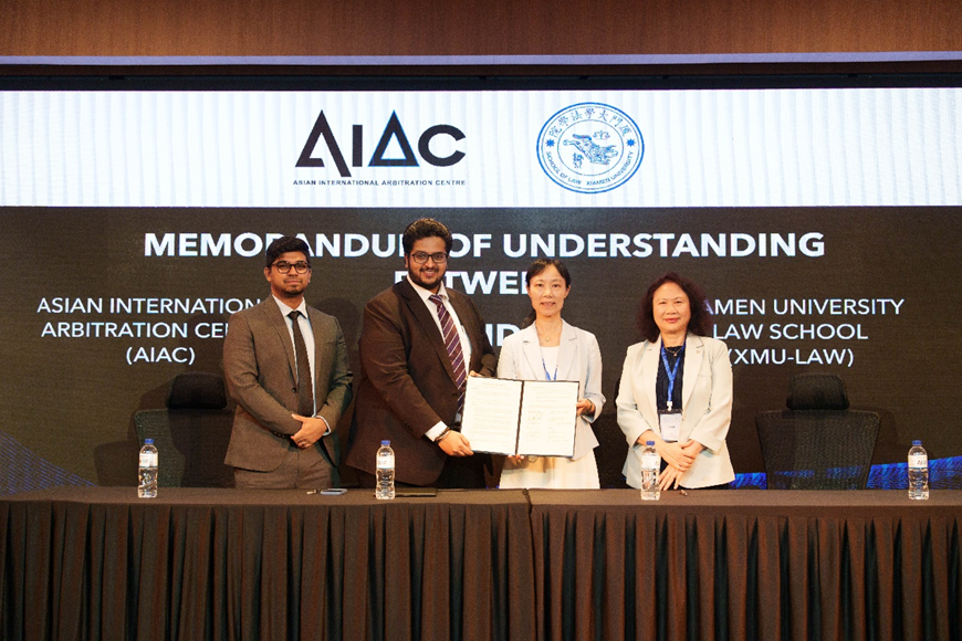 One of the highlights of the event was the MOU signing ceremony, where Prof. Zhu Xiaoqin, Vice Dean of Xiamen University Law School, and Mr. Danesh Chandran, Assistant Director of the AIAC, signed the Memorandum of Understanding (MOU) on behalf of their respective institutions, with Prof. Lin Xiuqin, Dean of IPRI at Xiamen University, and Mr. Bryan Richard, Head of Business Development at the AIAC, as the witnesses. Both institutions look forward to further strengthening their exchanges and cooperation to contribute to the training of legal professionals with global outlook and international expertise.